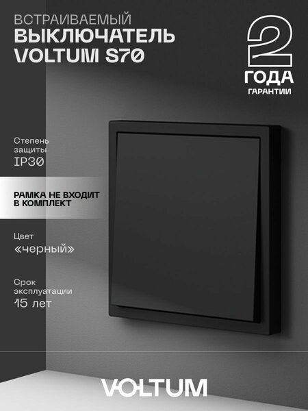 VOLTUM S70 — это: ✔ Простота установки (механизм с накладкой, рамка — отдельно) ✔ Долговечность (поликарбонатный корпус + усиленные контакты) ✔ Современный внешний вид (лаконичный глянцевый дизайн) Выбирайте VOLTUM S70 — комфорт и качество в каждой детали!