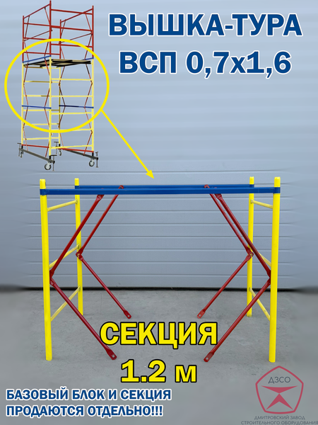 Вышка тура ВСП 0.7х1.6 м секция высота 1,2 м (размер 0.85мх1.6 м)