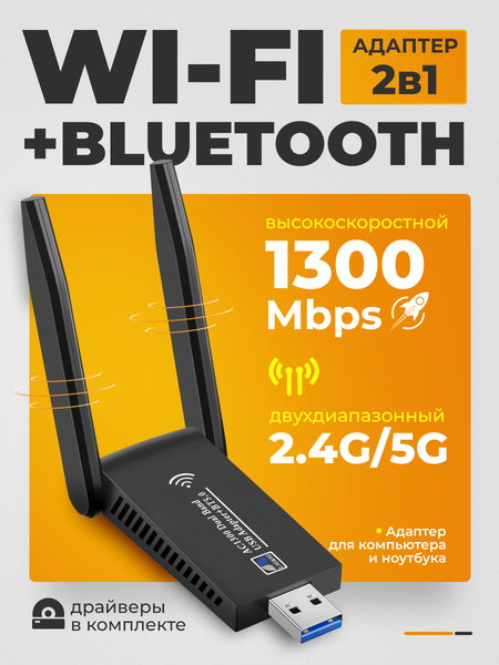 • Wi-Fi-адаптер обеспечивает быструю и стабильную связь, позволяя забыть о медленных соединениях и наслаждаться высокой скоростью загрузки, включая потоковое видео и онлайн-игры. • Поддержка технологии Bluetooth 5.0 позволяет подключать беспроводные устройства, такие как наушники, клавиатура или мышь, для удобства работы без проводов. Основные характеристики: • Скорость передачи данных до 1300 Мбит/с в диапазоне 5 ГГц. • Стриминг видео в высоком разрешении и быстрая загрузка файлов. • Долгий диапазон покрытия для использования в разных местах дома или офиса. • Простая установка без дополнительных драйверов. • Совместимость с операционными системами и стандартами Wi-Fi 802.11ac и 802.11ax. • Поддержка расширенного механизма безопасности WPA, WPA2. Дополнительные функции: • Компактный размер для удобства использования. • Подключение устройств без встроенного Wi-Fi модуля. • Усиление Wi-Fi сигнала. • Предотвращение перегрева благодаря воздушным отверстиям. • Версия Bluetooth: 5.0. • Радиус действия: 80 м на улице и до 40 м в помещении. • Подключение к сети WiFi на частоте 2.4ГГц и 5ГГц. Настройка 5ГГц: • Измените настройки адаптера в Windows в дополнительных настройках – Wireless Mode – выберите значение IEEE 802.11a/n/ac для работы на частоте 5ГГц. Драйверы: • Автоматически устанавливаются операционными системами. • Диск с драйверами в комплекте. • Ручная установка драйверов из репозитория возможна при необходимости.