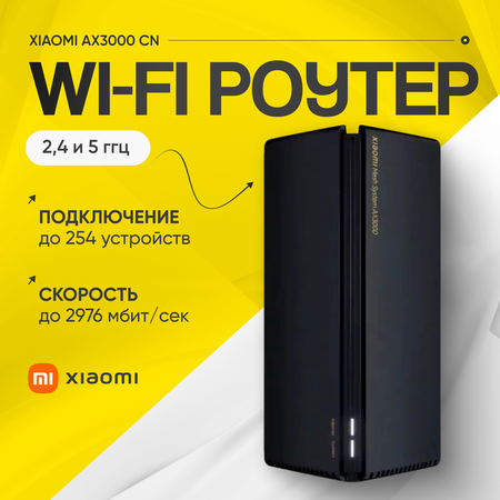 процессор: Qualcomm IPQ5000 двухъядерный, 1000 МГЦ; сетевой процессор: одноядерный, 1000 МГц; комплектация: Xiaomi Mesh System AX3000, руководство по эксплуатации, кабель питания, сетевой кабель