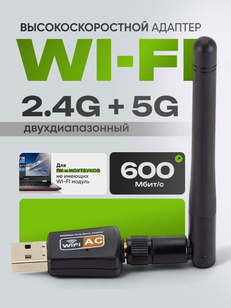 Беспроводной адаптер Wi-Fi для быстрого и надёжного подключения к интернету Этот адаптер поддерживает два частотных диапазона: 2,4 ГГц и 5 ГГц. Максимальная скорость передачи данных составляет до 600 Мбит/с. Адаптер идеально подходит для быстрого доступа к поисковым системам, онлайн-играм и потоковому видео. Усиленная антенна обеспечивает широкий охват. Адаптер поддерживает современные протоколы безопасности, что гарантирует защиту от хакерских атак. Чипсет: Realtek 8811CU Диапазон частот: 2,412–2,4835 ГГц; 5,180–5,320 ГГц; 5,500–5,700 ГГц; 5,745–5,825 ГГц. Рабочий канал: 1–14 (2,4 ГГц); 36–165 (5 ГГц). Стандарт: IEEE802.11b/g/n & 802.11ac. Максимальная пропускная способность: 600 Мбит/с. Скорость беспроводной связи: до 433 Мбит/с (11ac); до 150 Мбит/с (11n). Безопасность беспроводной сети: WPA/WPA2/WPA-WPA2/802.1x 64/128 бит WEP. Мощность антенны: 2 dbi SMA. Рабочая мощность: 18 дБм (типичная). Интерфейс: USB 2.0. Вес: 12 г. Размер: 146 × 20 × 10 мм. Для работы на частоте 5 ГГц необходимо изменить настройки адаптера в Windows в дополнительных настройках — Wireless Mode — выбрать значение IEEE 802.11a/n/ac.