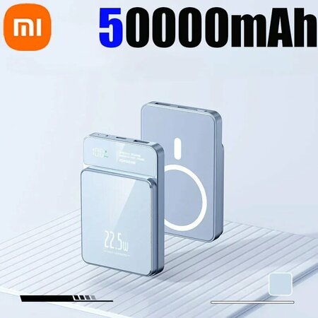 Xiaomi 50000 мАч Power Bank Магнитное беспроводное зарядное устройство Qi Magsafe 22,5 Вт Супер быстрая зарядка Powerbank для iPhone Samsung Huawei, Blue 50000mAh