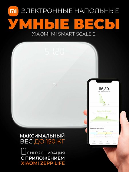 Умные весы электронные Xiaomi Mi Smart Scale 2 (XMTZC04HM) / Весы с подключением к телефону по Bluetooth, белый