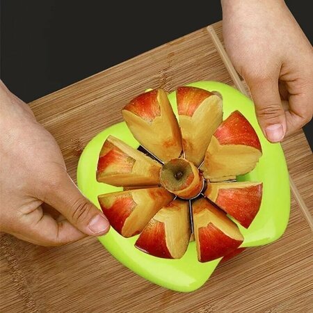 Яблокорезка, 16 см: одним нажатием вы сможете порезать яблоко на одинаковые дольки, отделив при этом сердцевину; пригодится для оформления фруктовых тарелок, десертов и других блюд; после использования промойте яблокорезку в проточной воде. Приспособление поможет вам разрезать яблоко одновременно на 8 долек, при этом сердцевина останется отдельно. Это очень удобно, когда нужно порезать фрукты для угощения, для детей или перед приготовлением компотов, варенья и других заготовок. Поставьте яблоко на горизонтальную поверхность, прижмите инструмент так, чтобы центр оказался в области сердцевины.