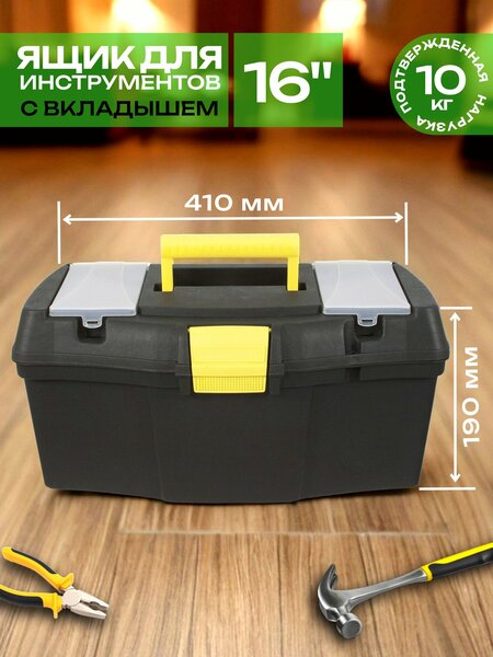 Достоинства:Ящик для инструмента среднего размера за приемлемую цену, купил то что нужно было. Недостатки:нет Комментарий:Есть поменьше ящик - на каждый день, а в купленный переложу не всегда нужный инструмент.