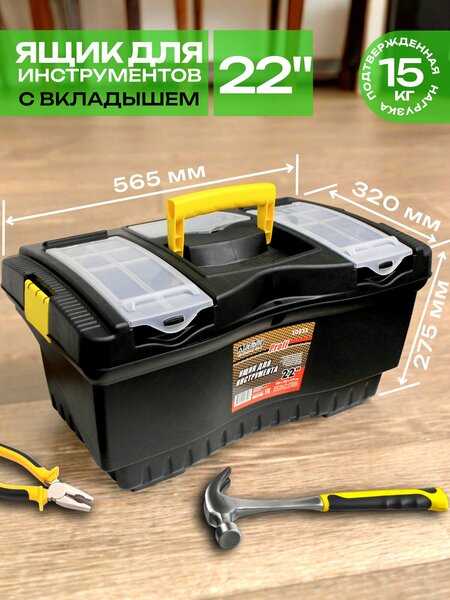 Ящик для инструментов Дельта "Профи 22" - это незаменимый помощник для каждого мастера. Изготовленный из прочного пластика, он обеспечивает долговечность и надежность хранения инструментов. Особенностью данного ящика является его трансформер-дизайн. Внутри ящика расположен скользящий лоток, который облегчает поиск нужного инструмента. В крышке ящика расположены три удобных органайзера, два из которых могут использоваться независимо от ящика. Это позволяет максимально эффективно использовать пространство и организовать хранение инструментов. Замки ящика находятся по бокам, что обеспечивает безопасность и удобство использования. Ручка для переноски делает переноску ящика еще более удобной. Ящик для инструмента "Профи 22" от Дельта предназначен для хранения ручного инструмента. Он имеет пять отсеков, что позволяет удобно хранить и транспортировать крупный инструмент. Цвет ящика - черный, что делает его стильным и практичным.