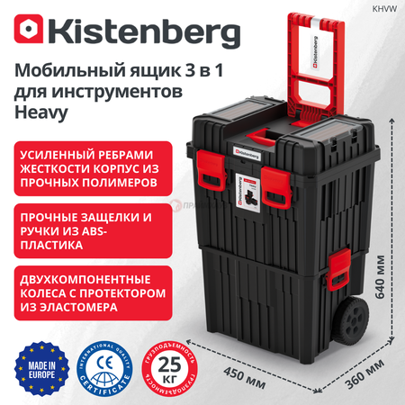 Мы рады представить вам вместительный и удобный ящик для инструментов на колесах Kistenberg HEAVY размером 45x36x64 см. Этот ящик станет незаменимым решением как для профессионалов, так и для любителей, которые ценят порядок на рабочем месте. Благодаря продуманной конструкции и увеличенной вместимости, в нем легко разместятся любые инструменты – от мелкого ручного до крупного электроинструмента. Удобные внутренние отделения и съемные контейнеры позволяют систематизировать содержимое, что делает поиск нужного предмета быстрым и простым. Прочная конструкция корпуса из армированной полимерной смеси обеспечивает высокую устойчивость к износу даже при интенсивной эксплуатации в сложных условиях. Колеса, покрытые эластомером, и складная ручка делают перемещение тяжелого инструмента легким и удобным, превращая ящик в мобильную инструментальную тележку. Высокая надежность и безопасность хранения достигаются за счет прочной системы запирания. Этот ящик отличается герметичной прокладкой, которая защищает содержимое от пыли и влаги, что особенно важно для работы в сложных условиях. Две ручки – для переноски и транспортировки – добавляют удобства при использовании, а прозрачная крышка органайзеров из прочного поликарбоната помогает быстро увидеть, что находится внутри. Ящик Kistenberg HEAVY идеально подходит для использования в гараже, мастерской или на строительной площадке. Организуйте рабочий процесс эффективно, и все необходимые инструменты всегда будут под рукой.