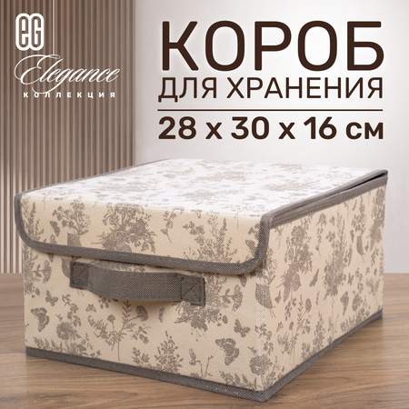 Новый стильный и красивый короб EG Elegance – отличный вариант для создания порядка в доме, шкафу, гардеробной. Короб очень удобен для хранения небольших вещей, что избавит вас от поиска и потери времени. В сложенном виде короб занимает совсем мало пространства. Легко раскладывается и приобретает жесткую форму за счет наличия в бортах и на дне плотного картона. Нетканый материал гарантированно защитит вещи от пыли, волос, шерсти, моли. Не пропустит свет, что избавит от выгорания цвета. Современное полотно не препятствует микроциркуляции воздуха, благодаря чему влага не скапливается.