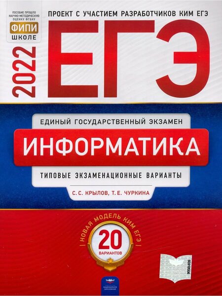 Пособие прошло научно-методическую оценку фгбну "ФИПИ" Серия подготовлена разработчиками контрольных измерительных материалов (КИМ) единого государственного экзамена. В сборнике представлены: - 20 типовых экзаменационных вариантов, составленных в соответствии с проектом демоверсии КИМ ЕГЭ по информатике и ИКТ 2022 года; - инструкция по выполнению экзаменационной работы; - ответы ко всем заданиям; - критерии оценивания. Выполнение заданий типовых экзаменационных вариантов предоставляет обучающимся возможность самостоятельно подготовиться к государственной итоговой аттестации в форме ЕГЭ, а также объективно оценить уровень своей подготовки к экзамену. Учителя могут использовать типовые экзаменационные варианты для организации контроля результатов освоения школьниками образовательных программ среднего общего образования и интенсивной подготовки обучающихся к ЕГЭ.