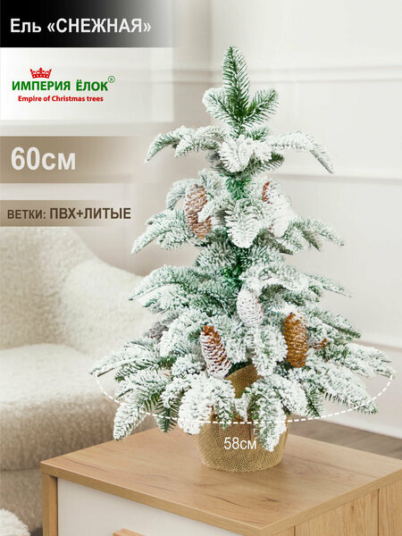 Праздник приходит в дом вместе с маленькой искусственной елочкой с шишками «Снежная»! Пышные ветки хвои украшены шишками, а мягкий снег на ветках создает неповторимую волшебную атмосферу Нового года! Искусственная ель высотой 60 см (высота указана с учётом подставки) идеально подойдет для дома или офиса. Эта нарядная елка ста украшением любой комнаты на весь период торжеств. Тип елки: литая (еловые иголки) +ПВХ (основания веток и ствола), заснеженная с шишками. Ветки уже закреплены на стволе, вам нужно просто распаковать елку и расправить веточки. Подставка: бетонная, задекорирована мешковиной, выдержит вес новогодней елки с новогодними шарами и гирляндой. Остася украсить шарами и гирляндой и положить под елку упакованные с любовью подарки на Новый год! Упаковка: плотная коробка, в которой можно хранить ель 0.6 м между праздниками. Искусственная елка украшена напылением в виде искусственного снега, который наносится с помощью электричества и очень приятный на ощупь. Допустимо небольшое осыпание в процессе распаковки и сборки, что является нормой. Сочетание ПВХ пленки и литого материала снижает стоимость ели, не портя ее внешний вид. Еловые ветки хорошо сохраняются между праздниками, легко восстанавливают форму после распаковки, не колются и не осыпаются. Елка с шишками 60 см легко собирается и разбирается. Новогодняя елка высотой 0,6 м с искусственным снегом и шишками прекрасно подойдет для фотостудии или квартиры. Небольшая напольная елка подходит для детей и детского праздника, потому что не имеет запаха и не вызывает аллергии. В ассортименте Империи Елок вы также найдете много разных гирлянд и елок для праздника. Чтобы увидеть весь наш ассортимент, нажмите на логотип Империи Елок и перейдите в наш магазин.
