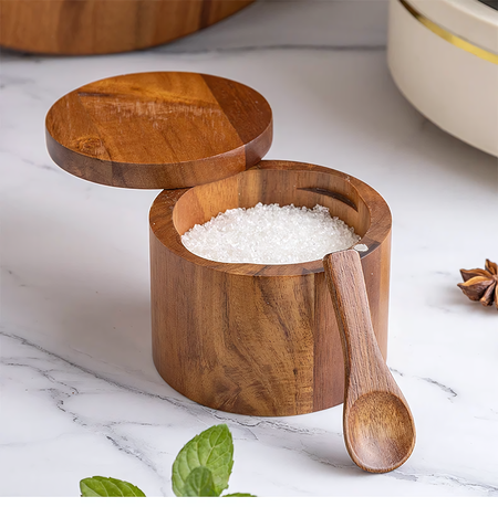 Емкость для специй из дерева акации с ложкой, 9х7 см, одно отделение