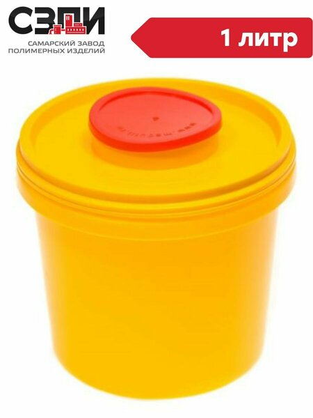Ёмкость-контейнер для сбора острого инструмента 1 литр круглый корпус с иглосъемником желтый