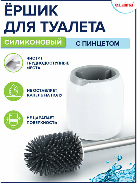Надежный ершик для унитаза LAIMA – это ваш идеальный помощник в поддержании чистоты в ванной и туалете. Изготовленный из высококачественного силикона, он нежно очищает поверхность туалета, не царапая ее. Силиконовый ершик легко справляется с труднодоступными местами, а специальная конструкция предотвращает застаивание воды и запахов. Удобный набор для ванной включает прочный держатель из нержавеющей стали и практичную подставку, которую можно установить на полу или прикрепить на стену. Для навесного крепления просто очистите поверхность и используйте монтажную наклейку. Ершик для унитаза также оснащен скрытыми щипцами для удаления волос и мелких предметов, что делает уборку еще более эффективной. Не упустите возможность сделать вашу уборку легкой и приятной с этим стильным аксессуаром для туалета. Выберите надежность и удобство – выбирайте туалетный ерш LAIMA! • Высота: 42 см. • Диаметр щетки: 7 см. • Наличие подставки: да. • Форма подставки: колба. • Диаметр подставки: 10.5 см. • Серия: TYPE. • Материал: ABS-пластик/силикон. • Цвет: белый/серый. • Артикул производителя: 608133.