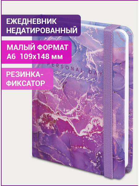 Откройте для себя уникальный недатированный ежедневник BRAUBERG, который станет идеальным помощником для ведения записей и заметок. Этот компактный планер формата А6 легко поместится в сумке или портфеле, благодаря чему всегда будет под рукой. Внутренний блок записной книжки содержит 128 листов качественной офсетной бумаги плотностью 65 г/м2, что обеспечивает комфортное и долговечное использование. Обложка блокнота с матовой пленкой и твердым переплетом гарантируют надежность и стильный внешний вид, а резинка-фиксатор предотвращает случайное открытие. Недатированные страницы дают полную свободу в планировании: каждый день можно начинать с новой страницы, не ограничиваясь определенными датами. Это делает ежедневник не только практичным планером, но и идеальным подарком на любой случай. Подарите себе или близким этот универсальный и стильный блокнотик, который будет радовать и вдохновлять на новые достижения каждый день. • Тип ежедневника: недатированный. • Серия: C рисунком. • Дизайн: Мрамор. • Формат: А6. • Назначение: универсальный. • Тип обложки: твердый книжный переплет. • Тип спецэффектов на обложке: матовая ламинация. • Материал обложки: 7БЦ. • Внутренний блок: офсет. • Плотность внутреннего блока: 65 г/м2. • Количество листов: 128. • Справочная информация: да. • Наличие рисунка на обложке: да. • Цвет: с дизайном. • Индивидуальная упаковка : да. • Артикул производителя: 114569.