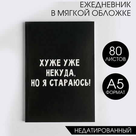 Ежедневник с приколом "Хуже уже некуда, но я стараюсь!", А5, 80 л