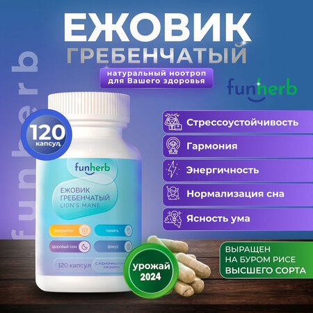 Ежовик гребенчатый для повышения активности мозга 120 капсул