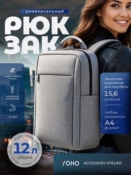 Рюкзак YOHO городской, универсальный, с отделением для планшета / ноутбука 15,6" * - это стильный и практичный аксессуар, который подойдет для работы, учебы, путешествий и активного отдыха. * Габариты рюкзака составляют 30х40х10 см, что позволяет вместить планшет или стандартный ноутбук 15,6" (в зависимости от пропорций экрана и ширины рамки до 17"). Внешние габариты ноутбука должны быть по ширине - до 38 см, по длине - до 28 см. Однотонный серый цвет рюкзака прекрасно впишется в гардероб мужчины и женщины любого возраста и профессии. Рюкзак обладает хорошей вместительностью и двумя отделениями, в которых можно расположить все необходимые для работы и учебы вещи: документы, папки, смартфон, книги. Защита от воды и карман для телефона обеспечивают дополнительную безопасность ваших вещей. Рюкзак изготовлен из плотного синтетического материала оксфорд, который обладает высокой прочностью и долговечностью. Вес рюкзака составляет всего 0,3 кг, что делает его легким и удобным для переноски. Выбирая городской рюкзак YOHO, вы получаете стильный, практичный и функциональный аксессуар, который станет незаменимым помощником в вашей повседневной жизни.