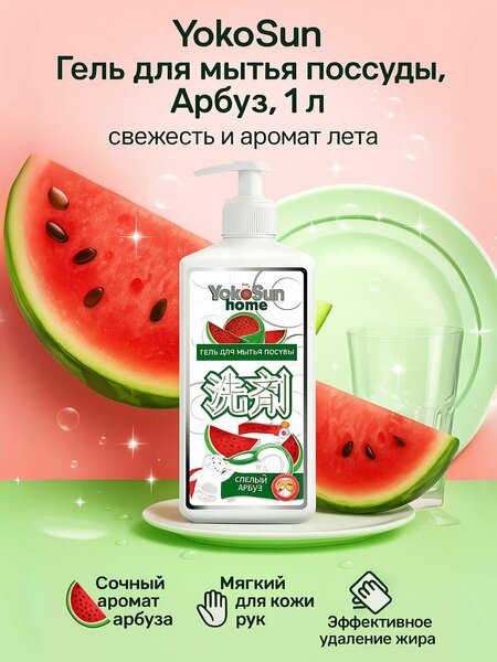 Гель для мытья посуды YokoSun (1 л) — это сочетание японского качества, экологичности и заботы о вашей семье. Он эффективно удаляет жир и загрязнения даже в холодной воде ❄, полностью смывается и безопасен для мытья детской посуды . Благодаря гипоаллергенной формуле средство не сушит и не раздражает кожу рук, сохраняя их мягкими и ухоженными. Биоразлагаемый состав делает его безопасным для окружающей среды, а концентрированная формула позволяет экономично использовать гель каждый день. Доступные ароматы: — Лимон — освежающий цитрусовый аромат и мощное удаление жира. — Алоэ вера — мягкая забота о коже рук и деликатное очищение. — Яблоко — фруктовая свежесть и лёгкость в каждом движении. — Арбуз — летний аромат и позитив на вашей кухне. ✨ YokoSun — это не просто чистая посуда, но и удовольствие от процесса.
