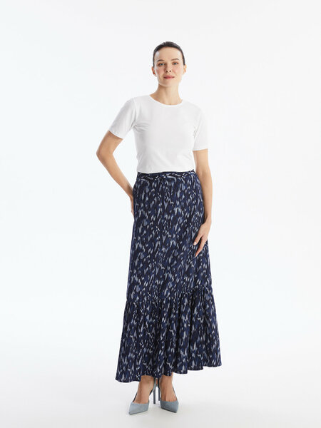 Юбка для женщин LC Waikiki: стильный и комфортный выбор Свободный крой и тонкий материал Юбка для женщин LC Waikiki выполнена в свободном крое, что обеспечивает комфорт и свободу движений. Тонкий материал из 100% вискозы делает юбку легкой и приятной на ощупь. Стильный дизайн и качественный материал Жаккардовый узор и темно-синий принт придают юбке изысканный вид. Уход за юбкой Для сохранения качества юбки рекомендуется стирка при максимальной температуре 30 °C, без использования отбеливателя. Барабанная сушка и глажка при низкой температуре также допустимы. Не подвергайте юбку химической чистке. Выбирая юбку для женщин LC Waikiki, вы получаете стильный и качественный продукт, который будет радовать вас своим комфортом и привлекательным внешним видом.