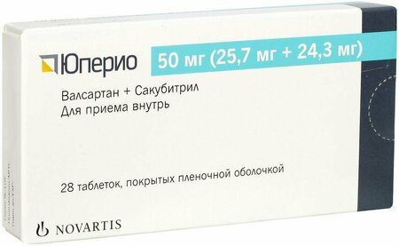 Время приема препарата Юперио не зависит от времени приема пищи. Сердечная недостаточность Целевая (максимальная суточная) доза препарата Юперио составляет 200 мг (102,8 мг + 97,2 мг) 2 раза в сутки. Рекомендуемая начальная доза препарата Юперио составляет 100 мг (51,4 мг + 48,6 мг) 2 раза в сутки. В зависимости от переносимости дозу препарата Юперио следует увеличивать в 2 раза каждые 2-4 недели вплоть до достижения целевой (максимальной суточной) дозы 200 мг (102,8 мг + 97,2 мг) 2 раза в сутки. У пациентов, не получавших ранее терапию иАПФ или АРА II, или получавших эти препараты в низких дозах, начинать терапию препаратом Юперио следует в дозе 50 мг (25,7 мг + 24,3 мг) 2 раза в сутки с медленным повышением дозы (удваивание суточной дозы 1 раз в 3-4 недели). Применение препарата Юперио возможно не ранее, чем через 36 часов после отмены иАПФ, так как в случае одновременного применения возможно развитие ангионевротического отека. Так как в состав препарата Юперио входит АРА II валсартан, его не следует применять одновременно с другим препаратом, в состав которого входит АРА II. При развитии признаков нарушения переносимости препарата Юперио (клинически выраженное снижение АД, гиперкалиемия, нарушение функции почек), следует рассмотреть вопрос о временном снижении дозы или коррекции дозы одновременно применяемых лекарственных препаратов. Эссенциальная артериальная гипертензия Рекомендуемая начальная доза препарата Юперио составляет 200 мг один раз в сутки. У пациентов с недостаточным контролем артериального давления при приеме дозы 200 мг один раз в сутки ее можно повысить до 400 мг один раз в сутки. У пациентов с гипертонической болезнью и сердечной недостаточностью рекомендуется дозировка как при сердечной недостаточности. Препарат Юперио можно использовать в режиме монотерапии или в комбинации с другими гипотензивными средствами, кроме ингибиторов АПФ и БРА. Пациенты особых категорий Пациенты с нарушением функции почек У пациентов с нарушениями функции почек легкой (рСКФ 60-90 мл/мин/1,73 м2) или умеренной степени тяжести (рСКФ 30-60 мл/мин/1,73 м2) коррекции дозы препарата не требуется (см. раздел "Фармакологические свойства"). У пациентов с сердечной недостаточностью и тяжелым нарушением функции почек (рСКФ <30 мл/мин/1,73 м2) рекомендуемая начальная доза препарата составляет 50 мг 2 раза в сутки. Безопасность и эффективность препарата Юперио у пациентов с эссенциальной артериальной гипертензией и тяжелым нарушением функции почек (рСКФ <30 мл/мин/1,73 м2) не установлены (см. раздел "Фармакологические свойства") Пациенты с нарушением функции печени У пациентов с нарушениями функции печени легкой степени (класс А по классификации Чайлд-Пью) коррекции дозы препарата Юперио не требуется. Рекомендуемая начальная доза препарата у пациентов с сердечной недостаточностью и умеренным нарушением функции печени (класс В по классификации Чайлд-Пью) составляет 50 мг два раза в сутки. Рекомендуемая начальная доза препарата у пациентов с эссенциальной артериальной гипертензией и умеренным нарушением функции печени (класс В по классификации Чайлд-Пью) составляет 100 мг один раз в сутки. Препарат Юперио не рекомендован к применению у пациентов с тяжелыми нарушениями функции печени (класс С по классификации Чайлд-Пью). Применение у детей и подростков в возрасте до 18 лет Данных по безопасности