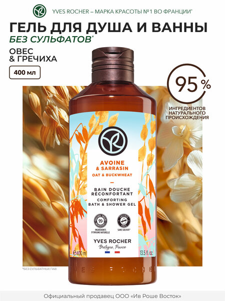 Гель для душа и ванны с формулой без сульфатов* и красителей. Пленительный аромат для наслаждения всеми гранями природы. Мы в Ив Роше выбрали неповторимую композицию Овса и Гречихи с бархатистыми нотами – миндальными, молочными, ванильными и кокосовыми. Безсульфатный гель с пышной обволакивающей густой пеной очищает кожу, сохраняя естественное увлажнение, не пересушивая ее. Парфюмированный гель для душа с нежным молочным запахом станет отличным подарком на день рождения или любой другой праздник. Очищающий гель в большом объеме подходит для ежедневного применения. Продукт разработан для всех типов кожи, включая сухую, благодаря своей безопасной формуле. Используйте также в качестве пены для ванны, добавляя несколько колпачков геля при заполнении ванны водой. Ароматизированный французский гель для душа женский доступен также в формате 200 мл. *Без сульфатных ПАВ *Внешний вид этикетки и упаковки полученного продукта могут отличаться от указанных на фото