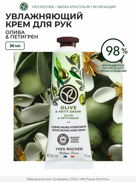 Прикоснитесь к самой природе с этим кремом для рук без силиконов и красителей, который увлажнит вашу кожу и придаст ей нежный аромат. Мы в Ив Роше объединили эфирное масло Петигрена, экстракт Оливы и органическое масло Карите БИО. Увлажняющий крем с цветочным запахом и тающей текстурой содержит 98 % ингредиентов натурального происхождения. Легкая текстура обеспечивает мгновенное увлажнение и питание без ощущения липкости, быстро впитывается, снижая ощущение стянутости. Парфюмированный крем идеально подходит для ежедневного применения, защищая руки от ветра и мороза в зимний период и предотвращает потерю влаги летом. Он эффективно борется с сухостью, успокаивает кожу, быстро восстанавливая и смягчая ее. Увлажняющий крем подходит для всех типов кожи - в том числе для сухой и раздраженной. Компактный маленький крем в мини тревел формате идеально подходит для путешествий и повседневного ношения в сумочке. Протестировано под дерматологическим контролем. Внешний вид продукта может отличаться от изображения. *Источник: Kantar Worldpanel. Совокупность женщин покупателей за весь период 2023 года (данные по состоянию на 25.12.2023). № 1 в штучном и стоимостном выражении. Персональный уход: средства для душа, дезодоранты, уход для волос, лица, тела, макияж, жидкость для снятия лака, парфюмерия, краски для волос, мыло, солнцезащитные средства, средства для укладки волос, детские товары.