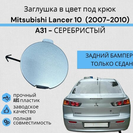 Заглушка в цвет под крюк Mitsubishi Lancer 10 Митсубиси Лансер (2007-2010) A31 - серебристый , если вы посмотрите на передний или задний бампер многих современных новых автомобилей, то вы наверняка увидите на них небольшие квадратные, круглые (или других форм) пластиковые заглушки, которые интегрированы прямо в эти пластиковые бампера. Для этого необходимо нажать пальцем на пластиковую крышку с одной стороны чтобы снять ее с бампера или повернуть в сторону (в зависимости от марки и от модели автомобиля). Во многих автомобилях то самое место куда нужно нажать пальцем, обозначается маленьким значком в виде треугольника. Сняв с бампера пластиковую крышку вы сможете вкрутить буксирный крюк, чтобы далее закрепить на нем буксировочный крюк или, если ваша машина оснащена буксировочной петлей (сразу после того, как откроете крышку), трос для буксировки. Новая заглушка под крюк качественно окрашенное в цвет вашего автомобиля, очень высокого качества! Заказывая у нас заглушку в цвет, Вы получаете совершено новый кузовной элемент с заводской окраской (грунт, краска, 2 слоя лака) в нужный цвет