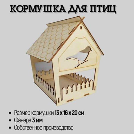 Кормушка для птиц уличная "Снегирь" - основа для декора, 7 деталей, 13х16х20 см, фанера.