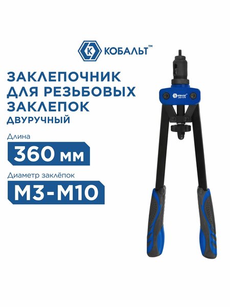 Двуручный заклепочник КОБАЛЬТ 360 мм представляет собой надежный инструмент для работы с резьбовыми заклепками различных диаметров. Он оснащен рычажной конструкцией, что обеспечивает удобство и простоту использования. Заклепочник подходит для работы с заклепками диаметром от М3 до М10. Это позволяет использовать его для монтажа различных материалов, таких как сталь, алюминий, нержавеющая сталь и медь. Инструмент поставляется в удобном кейсе, который обеспечивает безопасное хранение и транспортировку заклепочника и его комплектующих. В комплекте идут съемные насадки для работы с различными диаметрами заклепок и монтажный ключ. Рукоятки заклепочника выполнены из пластика и резины, что обеспечивает надежный хват и предотвращает скольжение инструмента из рук. Выбирая двуручный заклепочник КОБАЛЬТ 360 мм, вы получаете надежный и удобный инструмент для работы с резьбовыми заклепками различных диаметров и материалов.