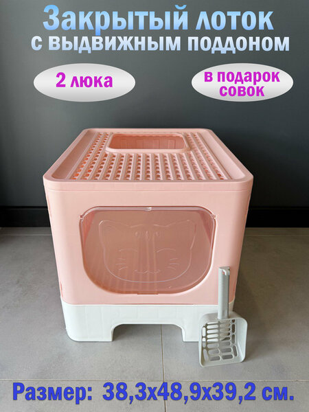 Достоинства:Даже мои жиробасы влазят, отличный туалет и не пахнет. Недостатки:разве только цвет розовый не нравится и не было верхнего люка в поставке( Комментарий:покупкой довольны все, наполнитель не валяется в таком количестве по дому , стало жить комфортнее, 2 кошки его тоже полюбили , одна даже лежит на нем)