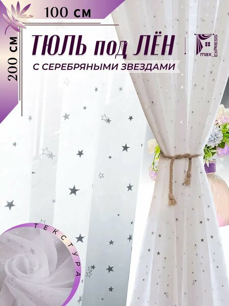 Очень стильная и красивая занавеска под лен с серебристыми звездами с утяжелителем, она выполнена из ткани молочного цвета размер ширина 100 см. высота 200 см. Это идеальное решение для любого интерьера. Эта декоративная штора универсальна. Она подойдет для гостиной спальни детской кухни зала и для любой дачи. Высококачественная турецкая ткань легкая. Современный стиль хорошо вписывается во все комнаты дома. Это настоящее украшение для окна. Занавеска мягко рассеивает лучи солнца и красиво переливается. К изделию уже пришита шторная лента. Вам останется только повесить ее на карниз с помощью крючков. Гардина длинная и подчеркивает линии современного кухонного гарнитура или гармонирует со столовой классикой. На любой даче она будет свидетельствовать о домашнем уюте и комфорте. Также он заявит о безупречном вкусе хозяйки. Рекомендации по уходу: ручная стирка, либо машинная на деликатном режиме при температуре не выше 30 градусов. После гладить тюль не обязательно. Его можно повесить на карниз, все складки и заломы расправятся самостоятельно под тяжестью изделия. Подарите себе новую одежду для ваших панорамных окон или балкона. Пусть эта элегантная тюль поднимает вам настроение и придает помещению атмосферу роскоши и романтики!
