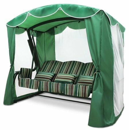 3 подушки-кресла (с оборкой, закругленный верх), тент Люкс с антимоскитной сеткой, 2 больших подлокотника, 3 дополнительные подушки, 2 подстаканника, 2 металлических тентодержателя.
