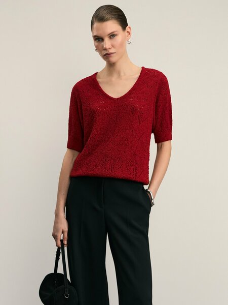 Этот женский трикотажный джемпер воплощает идеальное сочетание изящества и комфорта. Ажурная вязка придает изделию особую нежность, создавая романтичное настроение. Элементы перфорации в виде сердец добавляют шарма, делая модель особенно женственной. Укороченный прямой крой и V-образный вырез обеспечивают элегантную посадку по фигуре, подчеркивая ее достоинства. Джемпер выполнен в женственном и романтичном стиле, добавляя образу нежности и утонченности. Изготовленный из дышащего трикотажного материала, продукт обеспечивает необходимую легкость в теплое время года. Расслабленный стиль отлично подходит как для прогулок по городу, так и для встреч с друзьями. Этот вязаный джемпер прекрасно сочетается с юбками, брюками или шортами, позволяя создать множество эффектных образов. Выбор одежды играет важную роль в создании вашего стиля и самовыражении. И этот ажурный джемпер сможет добавить шикарную ноту вашему постоянному стилю или же освежить образы выходного дня.