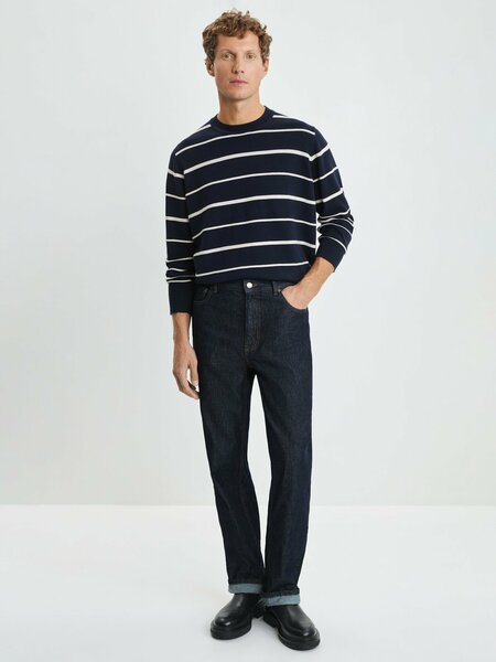 Яркий и комфортный мужской джемпер с длинными рукавами со стандартной линией плеч и контрастным принтом в полоску станет отличной базой для образов на каждый день. Прямой крой на основе модели базового джемпера со стандартной линией плеч подарит свободу движениям, мягкая и нежная хлопковая ткань приятна к телу и позволяет коже дышать, а круглый вырез комфортен в носке и отлично подойдет под рубашки или пиджаки. Носи этот джемпер с легкими брюками в аутфитах на теплое лето, комбинируй с джоггерами в домашних и спортивных луках, миксуй с джинсами в образах на каждый день или носи в офис под пиджак. Этот джемпер Zarina - незаменимый элемент современного гардероба мужчины! Параметры модели на фото 98-82-94, Размер на модели L, Рост модели 185
