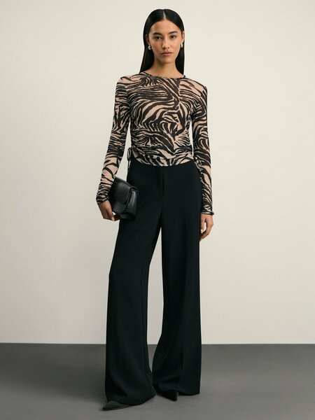 Женский джемпер с абстрактным принтом сочетает в себе уникальный стиль и комфорт. Анималистичный дизайн добавляет оригинальности и привлекает внимание. Изделие выполнено с добавлением эластана, что обеспечивает отличную посадку на фигуре, повторяя её контуры. Полупрозрачный материал придаёт образу легкость и изысканность. Лонгслив облегающий позволяет выделить стройность силуэта благодаря продуманному крою. Модель отличается укороченной длиной, что делает её идеальным выбором для создания модного современного образа. Сбоку имеются завязки, использование которых позволяет регулировать длину изделия по вашему желанию, предоставляя возможность варьировать стиль в зависимости от ситуации. Длинный рукав обеспечивает комфортное ношение в прохладное время года и дополнительную защиту от ветра. Круглый вырез горловины подчёркивает женственность модели, делая её подходящей для большинства случаев. С легким покроем и элегантным силуэтом, он подойдет для создания как повседневных, так и более формальных луков. Носите его с джинсами, юбками или брюками, создавая уникальные сочетания для учебы, работы или встречи с друзьями. Добавьте к нему аксессуары в тон или контрастные детали для завершения вашего стиля.