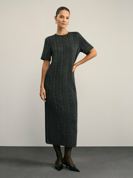 Женское платье-футболка, выполненное с мерцающей нитью, представляет собой уникальное сочетание современных тенденций и классической элегантности. Длина миди позволят ему великолепно сочетаться с различными стилями обуви, создавая как повседневные, так и вечерние образы. Круглый воротник и короткие рукава добавляют модели особую женственность и комфорт во время носки в любое время года. Свободный крой обеспечивает абсолютную свободу движений; прямой силуэт идеально подчёркивает фигуру, не стесняя её. Широкая размерная сетка данного изделия позволяет подобрать идеальную посадку независимо от особенностей фигуры. Это стильное решение подходит для многочисленных случаев: будь то активный выходной день или романтический вечерний ужин. Мерцающая нить создает легкий блеск при любом освещении. Такое платье-футболка станет отличным дополнением гардероба. С ним вы сможете чувствовать себя уверенно в любое время дня. Оно прекрасно сочетается с различной обувью: от кроссовок до классических туфель. Выбор этого изделия позволит добавить изысканности даже в повседневный образ. Носите его на свидание, вечеринку или прогулку – данный предмет одежды подчеркнет вашу индивидуальность.