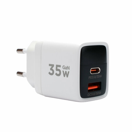 Зарядное устройство Cablexpert с дисплеем 35 Вт и поддержкой QC4+ и PD3 - это высококачественное и функциональное устройство, которое станет незаменимым помощником для каждого пользователя. Зарядное устройство оснащено двумя портами: USB и Type-C. Это позволяет одновременно заряжать два устройства, что особенно удобно в путешествиях или на работе. Матовый корпус устройства приятен на ощупь и не скользит в руке, что обеспечивает комфортное использование. Технические характеристики устройства включают вход AC 110-240В, 50/60ГЦ и выход Type-C (макс 35Bт) и USB (макс 30Bт). Максимальная мощность при совместной работе составляет 17Bт (5V/3.4A). Зарядное устройство Cablexpert с дисплеем 35 Вт и поддержкой QC4+ и PD3 - это надежное и функциональное решение для быстрой и безопасной зарядки ваших устройств.