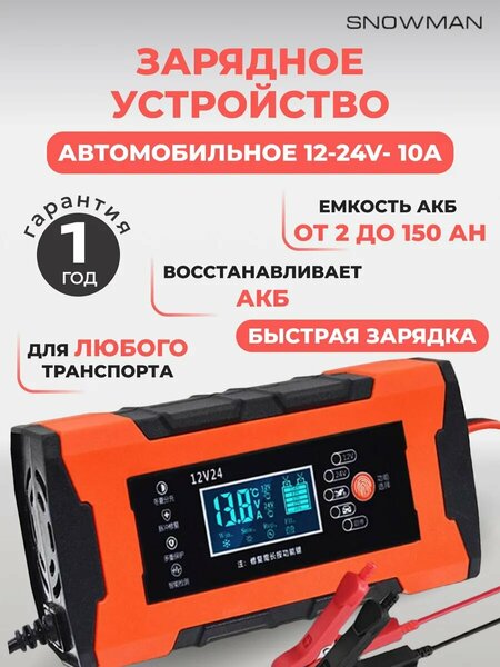 Зарядное устройство для автомобильного аккумулятора, зарядка АКБ автоматическая 12-24V