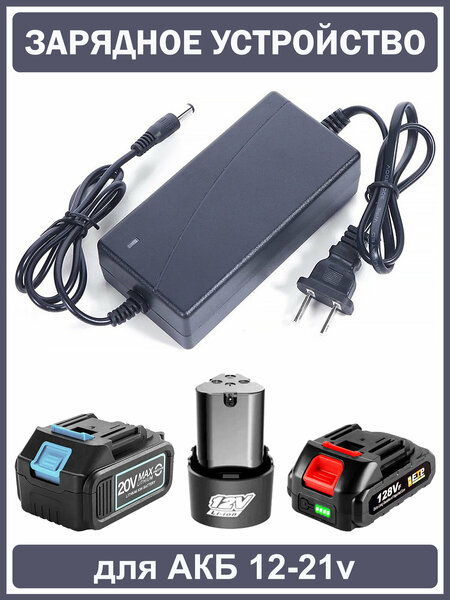 Зарядное устройство для шуруповерта, гайковерта, сучкореза, секатора, болгарки, цепной пилы и тд. с индикатором заряда для Li-Ion АКБ 12, 18, 20 21 вольт. Зарядка подходит для разных типов аккумуляторных батарей, обойма, слайдер и т. д. Характеристики ЗУ: Выход 21 вольт 1,2 ампера. При полном заряде аккумулятора АКБ на зарядке загорается зеленый индикатор, если индикатор красный, это значит что идет зарядка. Новые аккумуляторы АКБ первые 8-10 циклов могут заряжаться дольше. Чем больше емкость АКБ, тем дольше идет его зарядка. внимание! НЕ подходит для ноутбуков И камер видеонаблюдения, ЭТО НЕ адаптер, А зарядное устройство для аккумуляторов.