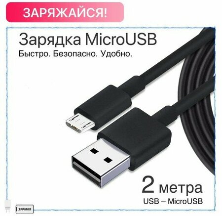 Зарядное устройство для телефона / Зарядка / Кабель / Длинный провод для зарядки Андроид 2 метра / Черный
