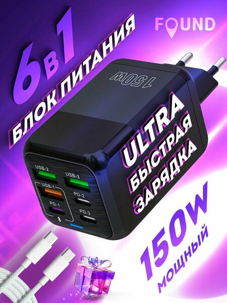 Зарядное устройство для телефона 150W быстрая зарядка – идеальный выбор для тех, кто ценит скорость и эффективность. Благодаря поддержке технологии быстрой зарядки это мощное и компактное устройство обеспечивает мгновенную зарядку ваших устройств . Теперь не нужно тратить много времени на ожидание, пока ваш телефон, планшет или другой гаджет будет заряжаться. Зарядка для телефона оснащена разъемами Type-C и USB, что делает его универсальным решением для зарядки различных устройств. Вы можете одновременно подключить пять устройства, что существенно экономит время и освобождает вас от необходимости использовать несколько зарядных устройств. Зарядка type c отлично подойдет для пользователей, которые часто путешествуют, так как блок для зарядки имеет компактные размеры позволяют легко перевозить его в сумке или рюкзаке. Высокое качество материалов и инновационные технологии обеспечивают долговечность и надежность работы зарядного устройства. Блок питания usb имеет стильный и современный дизайн, который гармонично впишется в любой интерьер. Его эргономичная конструкция обеспечивает удобство в использовании, а встроенные системы защиты предохраняют ваше устройство от перегрева, перенапряжения и короткого замыкания. Основные особенности: - Мощность 150W для быстрой и эффективной зарядки - Поддержка быстрая зарядка Type C и USB для одновременной зарядки нескольких устройств - Компактный и портативный дизайн, удобный для путешествий - Высокое качество материалов и долговечность - Встроенные системы защиты от перегрева, перенапряжения и короткого замыкания Эта зарядное устройство станет незаменимым помощником в вашей повседневной жизни, обеспечивая надежную и быструю зарядку ваших устройств. Купить блок питания type c – значит получить высокое качество и универсальность в одном устройстве.
