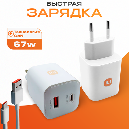 Зарядное устройство mi 67W/PD + кабель USB - Type-C для телефона Xiaomi, Honor, Realme, Infinix, Tecno и др