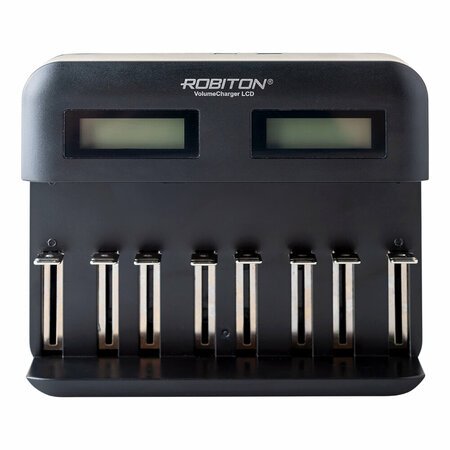 Автоматическое зарядное устройство ROBITON VolumeCharger LCD. Заряжает: 1 – 8 Ni-MH и Ni-Cd аккумуляторов с напряжением 1,2 В типоразмеров АА/HR6 и AAA/HR03 1 - 4 Ni-MH и Ni-Cd аккумулятора с напряжением 1,2 В типоразмеров C/HR14, D/HR20 Функции: