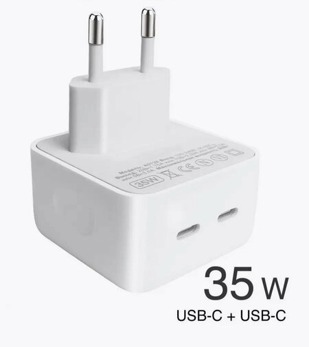 Сетевое зарядное устройство мощностью 35W идеально подходит для одновременной зарядки вашего смартфона, планшета или смарт-часов . Зарядное устройство поддерживает протоколы быстрой зарядки для IOS и Android устройств, что позволяет использовать его с абсолютным большинством современных гаджетов: смартфонами, планшетами, часами. Устройство также идеально подходит для питания беспроводных зарядок и станций. Устройство обеспечивает защиту ваших смартфонов и планшетов от: превышения выходных напряжений; короткого замыкания; скачков напряжения при перегрузке, перегрева. Зарядное устройство имеет два выхода USB-C (Type-c), что позволяет одновременно зарядить сразу два устройства. Данное устройство способно зарядить ваш гаджет в течение одного часа.