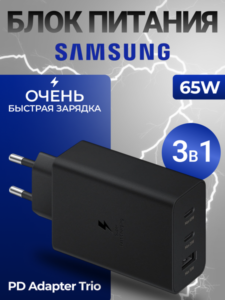 Сетевое зарядное устройство Самсунг EP-T6530NBEGEU EP-T6530 65W 3-Port USB-Cx2/USB Black - это мощный и надежный аксессуар для зарядки мобильных устройств. Мощность этого зарядного устройства составляет 65 Вт, что позволяет быстро и эффективно заряжать ваши устройства. Благодаря поддержке технологии Super Fast Charging 2.0, вы сможете заряжать свой смартфон или планшет в кратчайшие сроки, даже если аккумулятор почти разряжен. Устройство оснащено тремя портами USB, один из которых соответствует стандарту Type A, а еще два - Type C. Это позволяет одновременно заряжать до трех совместимых устройств, экономя ваше время. Максимальная выходная мощность составляет 65 Вт, а максимальная выходная сила тока - 5 А. Выходное напряжение варьируется от 5 до 240 В. Зарядное устройство оснащено защитой от перенапряжения и перегрева, что обеспечивает безопасность использования и продлевает срок службы устройства. В комплект поставки входит только само зарядное устройство, без кабеля. Сетевое зарядное устройство Самсунг EP-T6530NBEGEU 65W 3-Port USB-Cx2/USB Black - это надежный и мощный аксессуар для зарядки ваших мобильных устройств, который обеспечит быструю и безопасную зарядку, а также сэкономит ваше время.