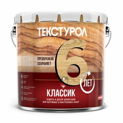 Защита и Декор Древесины Текстурол Классик 3л Орегон, Алкидная, Полуглянцевая для Внутренних и Наружных Работ до 6 Лет.