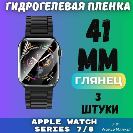 Защитная гидрогелевая пленка для умных часов Apple Watch Series 7/8/9 41mm (3 штуки) / глянцевая на экран / Самовосстанавливающаяся противоударная бронепленка для эпл вотч 7,8,9 (41мм)