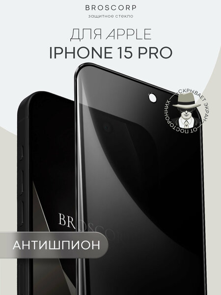 Защитное стекло антишпион на Apple iPhone 15 Pro (Айфон 15 Про), бренд BROSCORP, с эффектом приватности