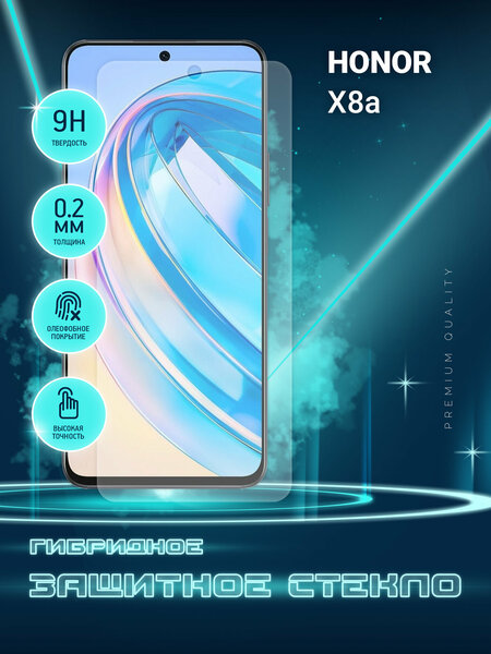 Crystal boost hybrid - гибридное стекло на экран для X8a, Хонор Х8а, Икс 8а изготовленное из композитного материала (стекловолокно + ПЭТ), совмещает в себе гибкость пленки ПЭТ и превосходит прочностью закаленное стекло (не возникают сколы и трещины по краям). Олеофобное покрытие препятствует появлению следов от пальцев. Защитное стекло не ощущается при использовании, обеспечивает хорошую чувствительность к касанию и не влияет на сенсорный отклик по всей поверхности дисплея. Так же совместимо со всеми ультразвуковыми датчиками отпечатка пальцев, встроенными в экран. Оно идеально прозрачное, не заметно на экране, не снижает четкость и яркость изображения и не меняет оригинальную цветопередачу. Полная проклейка поверхности Full Glue обеспечивает легкость в установке. Для сохранения продукта до момента поклейки, поставляется в прозрачной и синей транспортировочных пленках (клеевой слой находится под прозрачной пленкой). Для совместимости с чехлами предусмотрены отступы по краям.