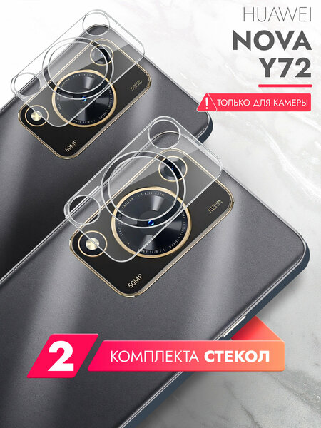 Защитное стекло для Huawei Nova Y72 (Хуавей Нова У72) на Камеру 2 штуки, (гибридное: пленка+стекловолокно), прозрачное силиконовая клеевая основа тонкое Hybrid Glass, Brozo